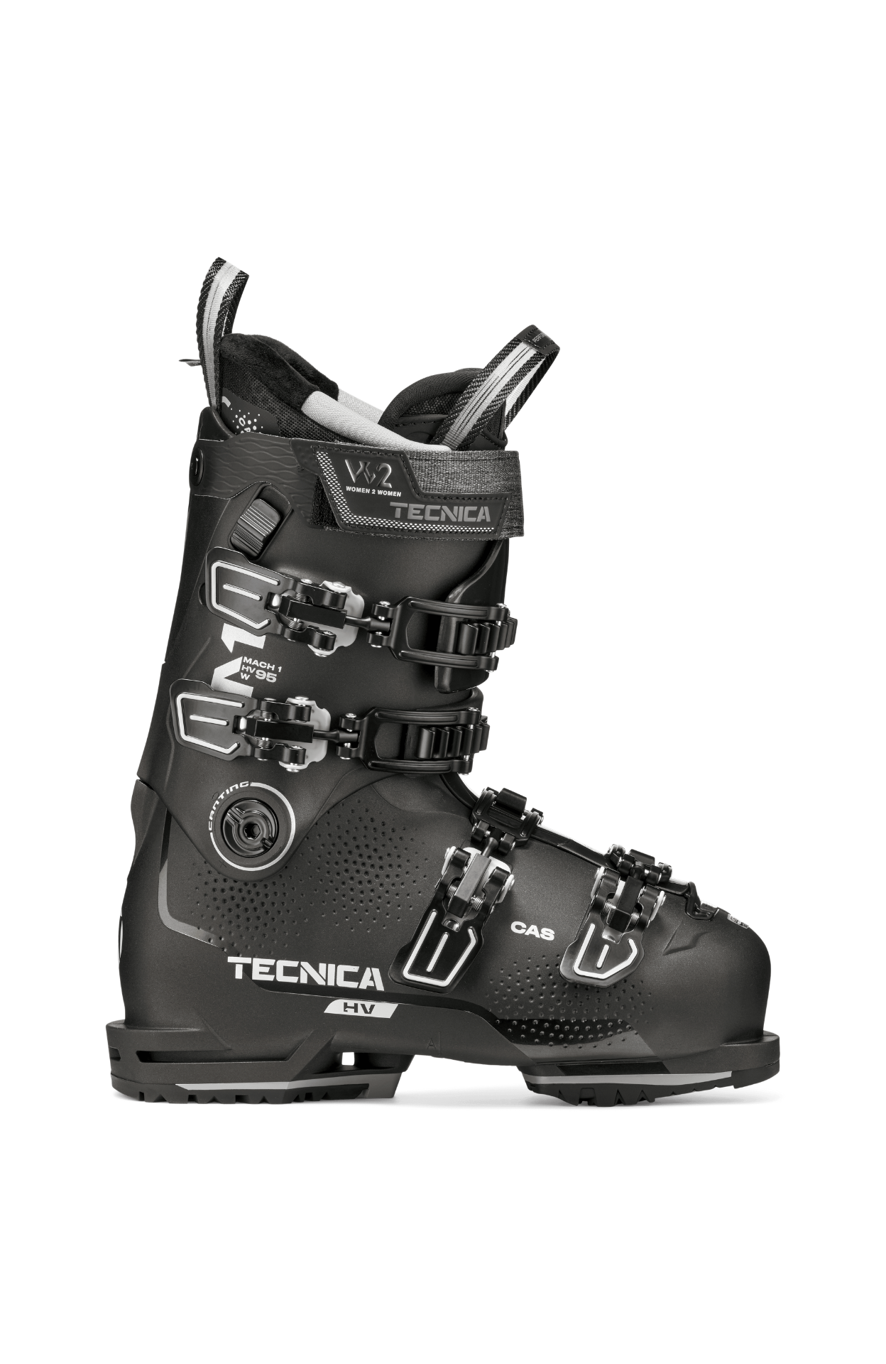 Mit dem Mach1 HV 95 W GW bringt Tecnica einen Allrounder für Damen mit breiten Füßen. Die 95er Flex ermöglicht ausreichend Stabilität auf der Piste und mit der GripWalk-Technologie fühlt sich die Trägerin auch zu Fuß sicher. Der anatomisch vorgeformte Schuh lässt sich individuell per C.A.S.-Technologie an jeden Fuß anpassen. Für stets angenehme Wärme im Skischuh ist der Innenschuh mit Celliantfasern ausgestattet. Diese wandeln die Körperwärme in Infrarotstrahlen um, regen damit die Blutzirkulation an. Tecnica hat den Skischuh nach dem Eco Design entwickelt und PVC-freie, recycelte und recycelbare Materialien verwendet.